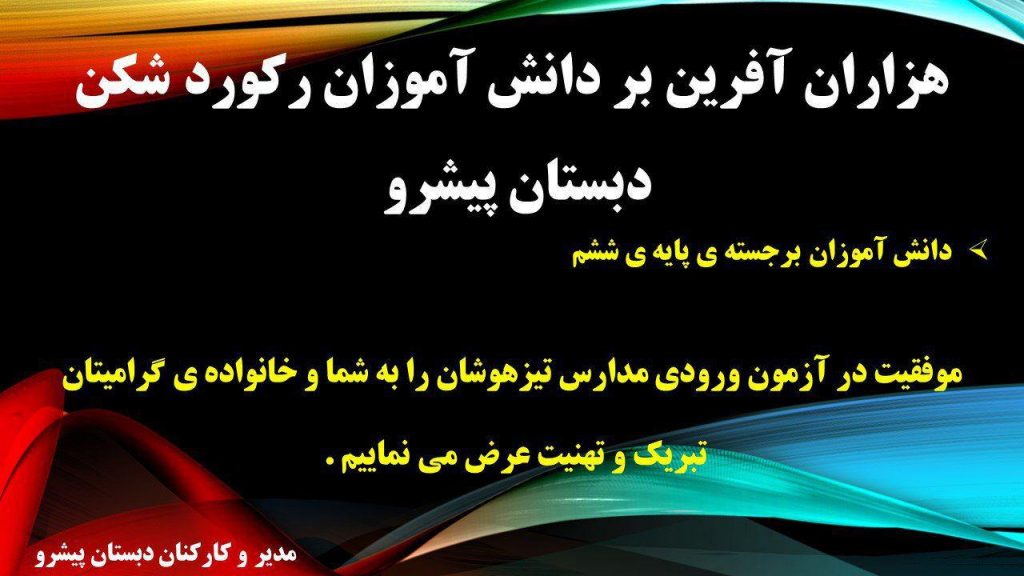 موفقیت در آزمون ورودی مدارس تیزهوشان دانش آموزان پایه ششم دبستان پیشرو